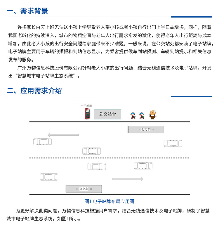 广州万物信息科技股份有限公司利用无线通信技术,实现对老人小孩定位管理,定时监控老人小孩的行踪,记录老人小孩的移动轨迹,确保乘车安全。